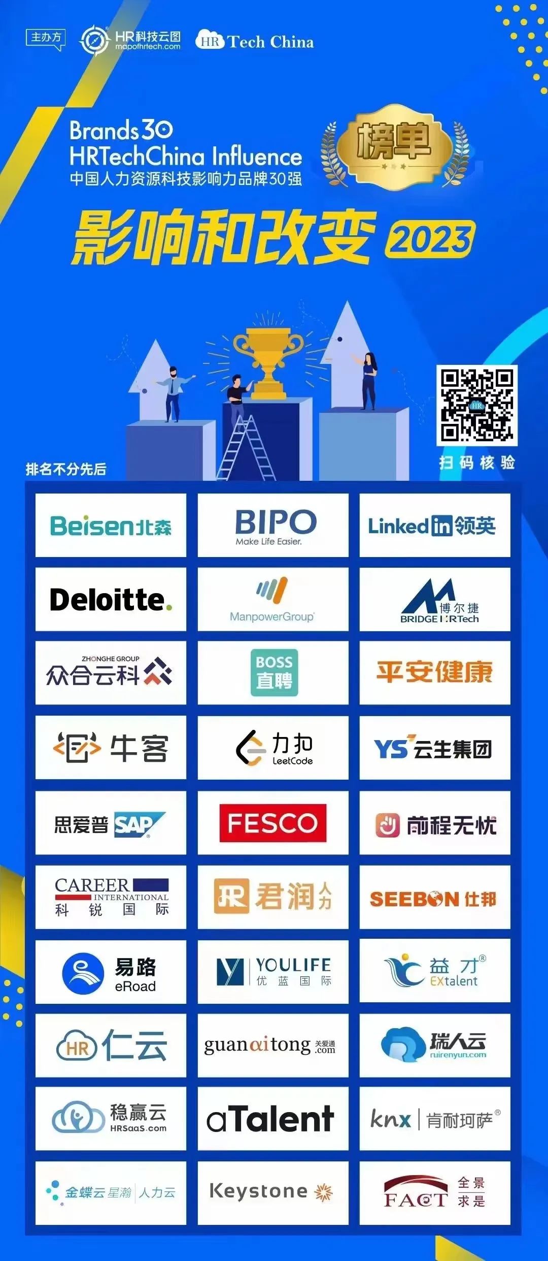 本次中国人力资源科技影响力品牌30强榜单重点关注品牌影响力,通过综合实力、产品能力、市场能力、创新能力、团队能力、技术能力、专业能力等多方面评审,综合品牌忠诚度、美誉度、传播度等品牌价值,同时结合品牌广泛的数字化现状,利用HRTech专业数字化品牌检测模型平台(LRP+)60% 和HR科技云图NPS测评 40%,从中国HR科技市场的400多家优秀HR科技品牌中打造出具有市场引导作用和社会公信力的权威影响力榜单。