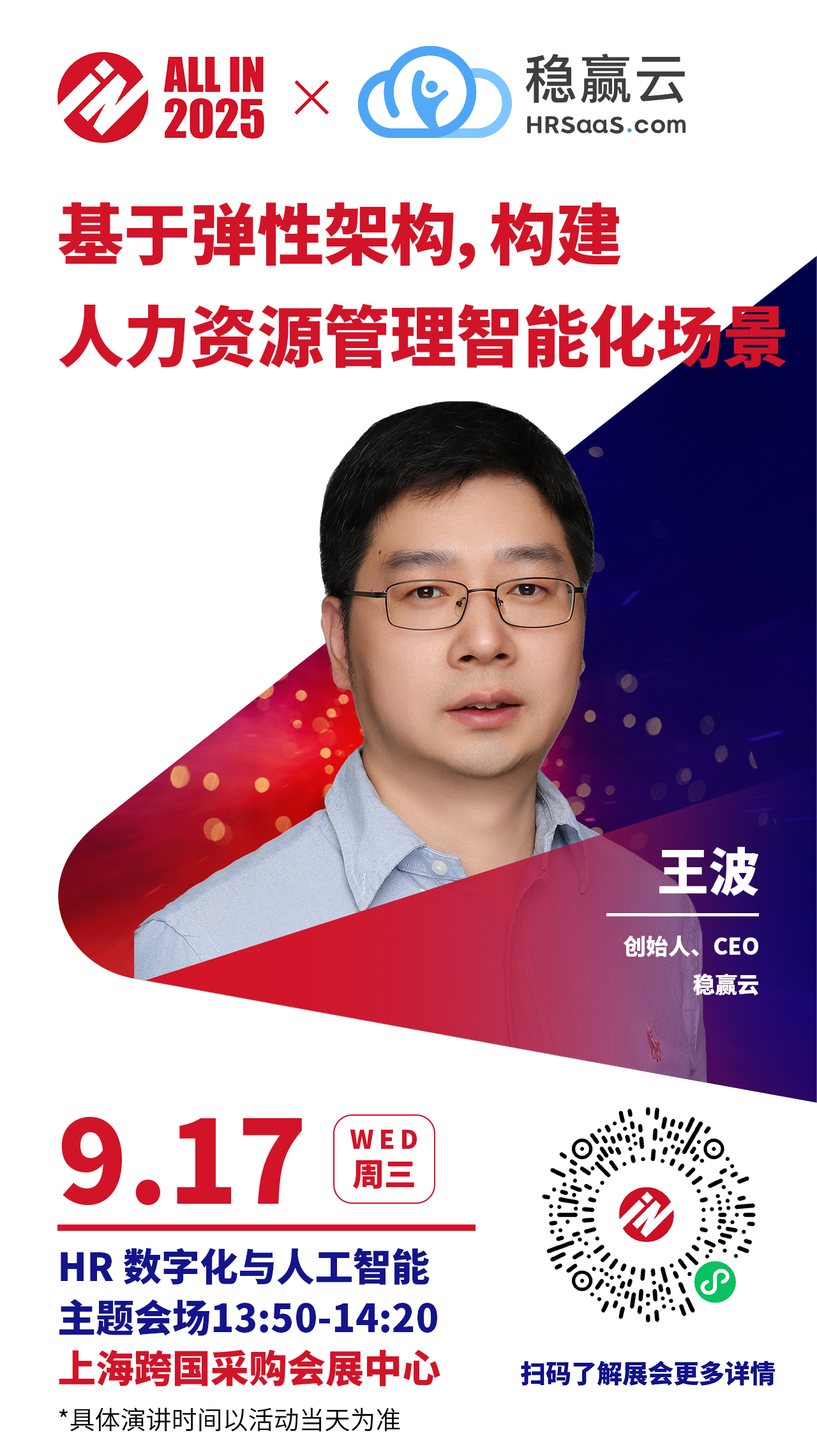 扫描上方海报二维码立即报名,与稳赢云相约『ALL IN 2025人力资源服务展-上海站』,开启人力资源管理数字化进阶之旅。